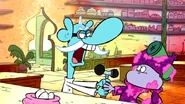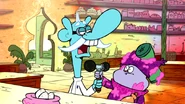 - When Chowder is trying to hide the gum, Truffles says “Don’t make me get the crowbar again!”, implying this happened before.