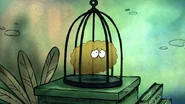 Kimchi currently lives in a cage that sits next to Chowder's bed in his room.