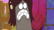 Sometimes, as in "The Trouble with Truffles" and "The Heist," Shnitzel is shown sporting long, brown hair. In the episode "The Heist," however, he had blonde hair in a ponytail. In an episode where Ms. Endive literally made a boyfriend for herself, he wore black dreadlocks to a party at her house.