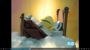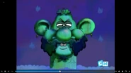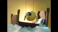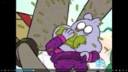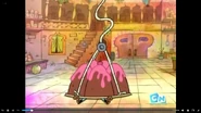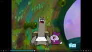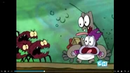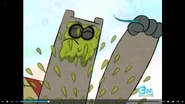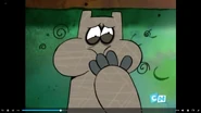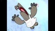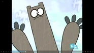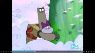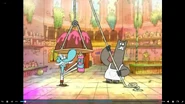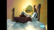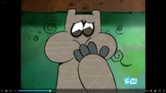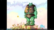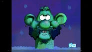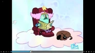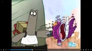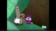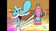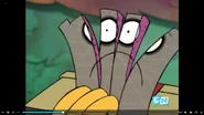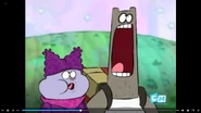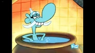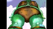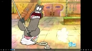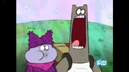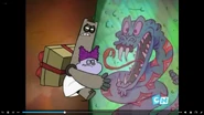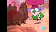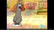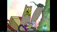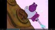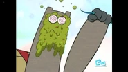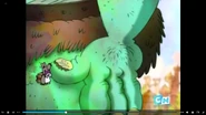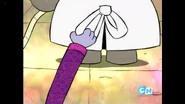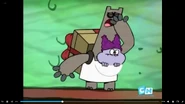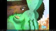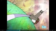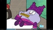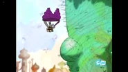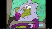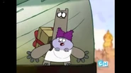 So the two attempt to reach the top of the giant where Mr. Capellini, the customer, lives. First Schnitzel and Chowder reach the butt and they fall and pull the giant's finger causing him to fart. Chowder tries to make the trip interesting by singing a song about dizziness, but his song literally makes Schnitzel sea sick, causing him to angrily toss the harmonica down, only to provoke up more trouble:
