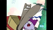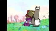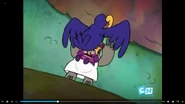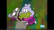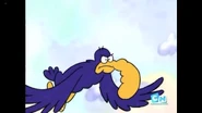 Bird: Who threw that harmonica? Chowder: Schnitzel did. Bird: (claws Schnitzel's head)How do you like them apples? Chowder: I like apples. (Bird claws Chowder) But these apples are terrible!